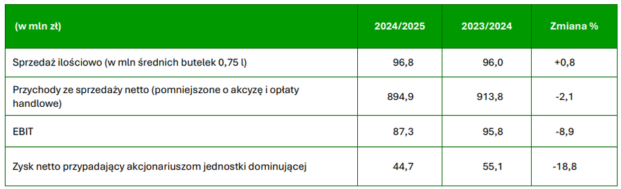 Rok 2024/2025 był rokiem spadku konsumpcji większości kategorii napojów alkoholowych. Na spadającym rynku GrupaAMB (AMBRA) zwiększyła wolumen sprzedaży o 0,8%, a wartość przychodów spadła o 2,1%. Rosła sprzedaż głównych marek, natomiast spadły przychody w segmentach premium.