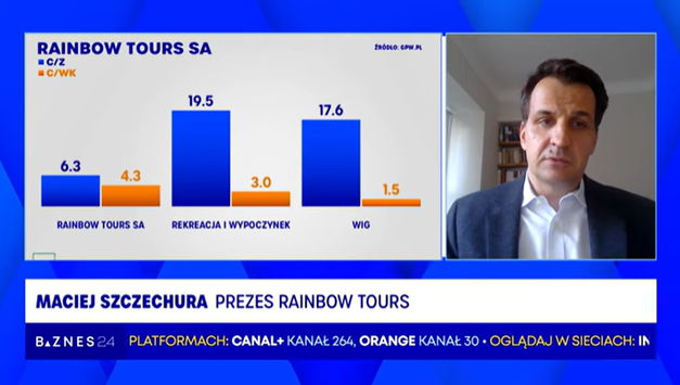 "Jestem spokojny, że wyniki trzeciego kwartału, który przypomnę, jest kluczowy w turystyce, ponieważ to on przesądza o wyniku całego roku. (...) Największa ilość wyjazdów z touroperatorami, że te wyniki trzeciego kwartału będą bardzo dobre i niejako nazwijmy, zrekompensują to, co dzisiaj tutaj pokazują państwo na wykresach. Spałbym spokojnie, wiemy jak dobrze nam idzie lato. Rzeczywiście mieliśmy jeden kwartał trochę wolniejszy, ale myślę, że też wolniejszy w kontekście rekordowego roku 2024, bo po prostu bardzo wysoka baza, której też musimy teraz sprostać, że tak powiem" - Maciej Szczechura, prezes RBW (RAINBOW)