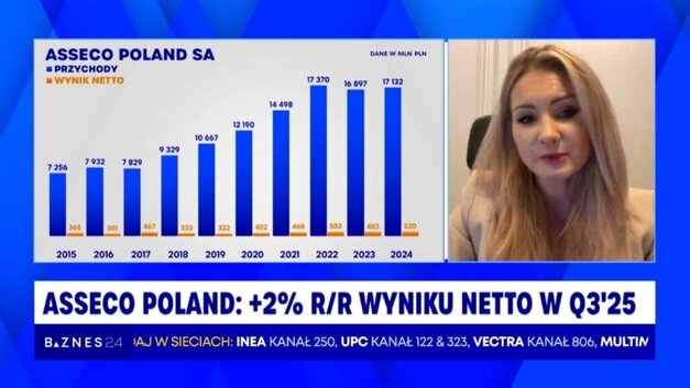 "My, jako spółka jesteśmy dość mocno skupieni na tym, żeby pracować i nad wzrostem, i przede wszystkim nad efektywnością, więc oglądamy dość mocno właśnie te przychody z tytułu oprogramowania i usług własnych i na nich też pokazujemy backlog, który w tym kwartale rośnie dwucyfrowo" - Karolina Rzońca-Bajorek, Wiceprezes Zarządu, CFO ACP (ASSECOPOL)