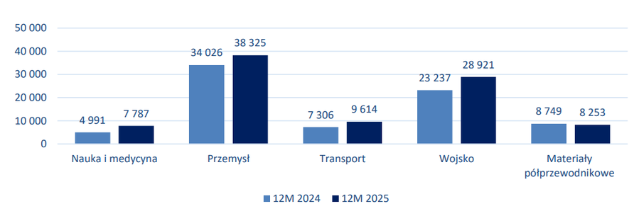 W segmencie wojskowym sprzedaż w IV kwartale 2025 wyniosła 11,4 mln zł (+66% r/r), natomiast w w 2025 osiągnęła poziom 17,5 mln zł (+7% r/r). Na znaczący wzrost przychodów segmentu wojskowego w IV kwartale 2025 wpływ miała m.in. realizacja kontraktu ze spółką z Grupy Safran.