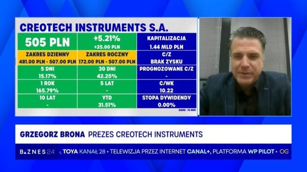 JACEK CHOLEWIŃSKI, BIZNES24: Obiecałem Państwu rozmowę z Grzegorzem Broną, prezesem Creotech Instruments. A zatem, Panie prezesie, witamy.