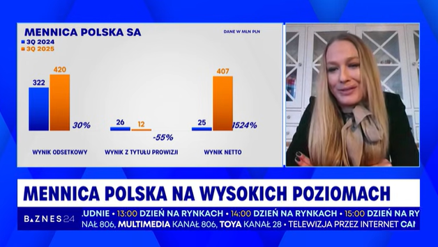 KB-F: My spodziewamy się dalszych wzrostów rozwojowych spółki. Natomiast myślę, że kurs MNC (MENNICA) nie tylko ma związek bezpośrednio z tym, co się dzieje w metalach szlachetnych, dlatego że oczywiście jest to jeden z aspektów i segmentów naszych działalności. Natomiast to, co na co należy zwrócić uwagę, to rok 2025 był dla Mennicy rekordowy w zasadzie w każdym segmencie, w którym operujemy. Z sukcesem też udało nam się przejąć, nabyć dla naszego portfela Mennicę Towers, czyli kompleks biurowców – dwóch biurowców w centrum Warszawy.