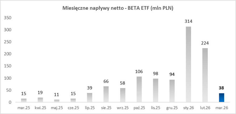 Na koniec marca 2026 roku łączne aktywa pod zarządzaniem funduszy BETA ETF wyniosły ponad 2,12 mld zł.