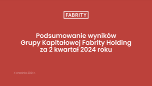 [wideo] Zapis konferencji podsumowującej wyniki Fabrity Holding w II kwartale 2024 r.