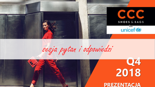Zapis sesji pytań i odpowiedzi z konferencji wynikowej spółki CCC z 1 kwietnia 2019 r. Marcin Czyczerski: Szanowni Państwo, zanim przejdziemy do fazy pytań i odpowiedzi, to...